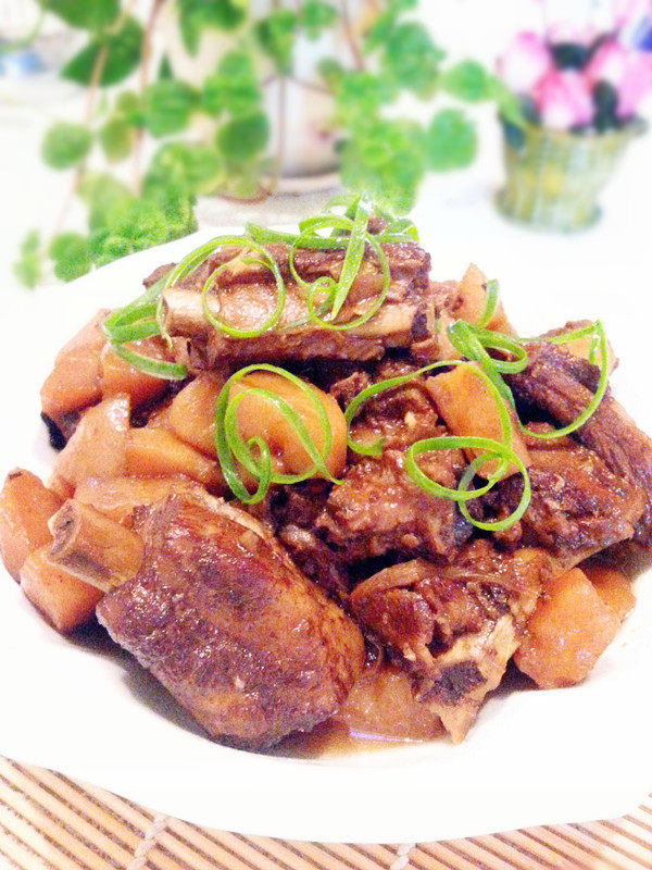 这是一款原味的土豆炖排骨,如果喜欢吃辣的,可以加适量的辣椒酱增加辣味。土豆选用面的,吃起来会比较香。