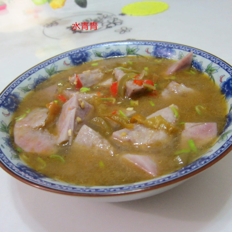 酸腌菜要炒炒酸味才醇香,酸腌菜、辣椒的用量按个人的喜好决定。