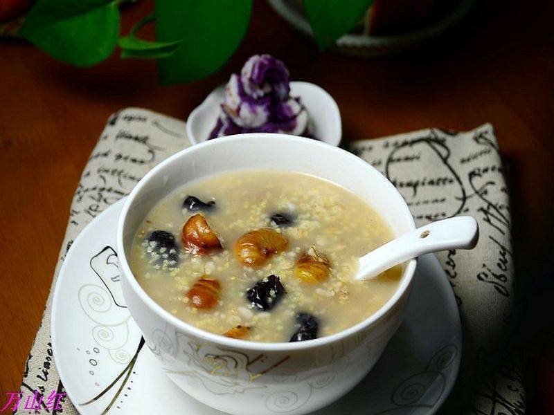 4:加入切碎的板栗,续煮20分钟即可。ps.也可以一开始板栗跟粥一起煮。
