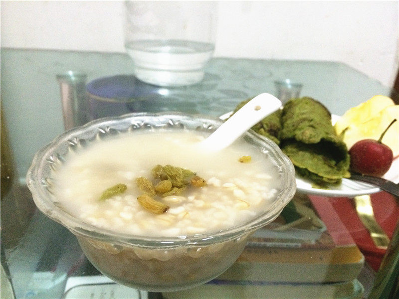 5:加入冰糖,溶化后盛入碗中,撒上少量葡萄干即可。