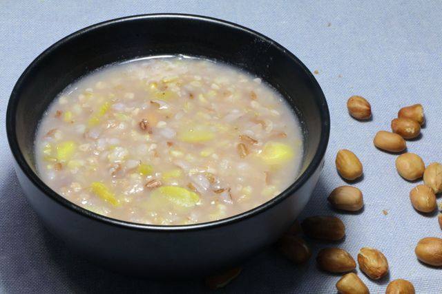 3:高压锅冷却盛出,香甜营养的栗子花生粥
