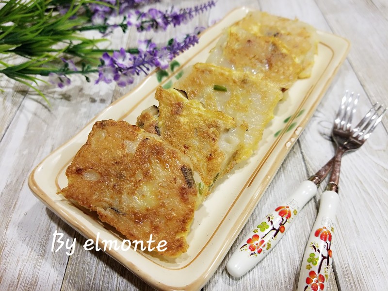 16:时间到后,又香又糯的煎萝卜糕就做好了。