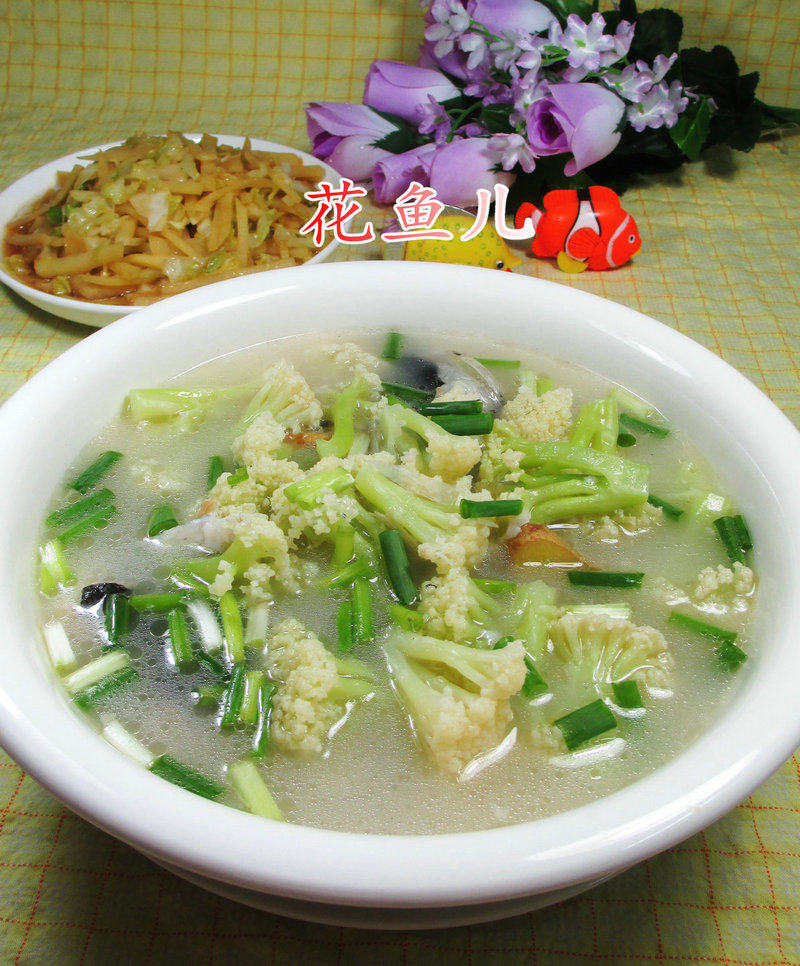 花菜鱼头汤是一道家常美味,汤色奶白,鲜香醇厚。做法简单,主要配料包括新鲜鱼头、洁白花菜,辅以姜片、葱段去腥提鲜。先用油将鱼头煎至两面金黄,再加入沸水与花菜一同炖煮,汤汁便逐渐浓郁。只需少许盐调味,就能轻松做出一锅暖身又营养的汤品,全家人都爱喝。