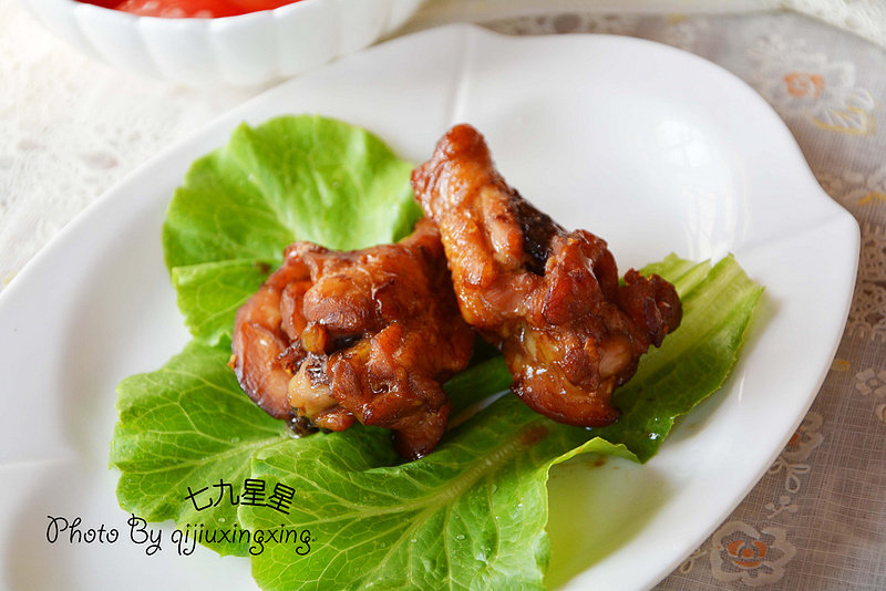 3:烤箱200°c预热5分钟,将鸡翅放入烤箱中间层,烤制20~25分钟既可