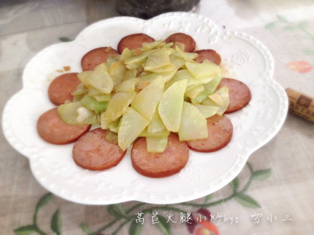 3:莴苣,火腿切好,油锅里炒均匀装盘备用。
