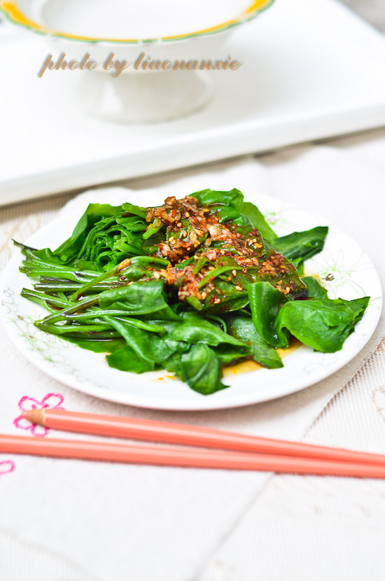 1:材料:鸡毛菜、蒜末、耗油