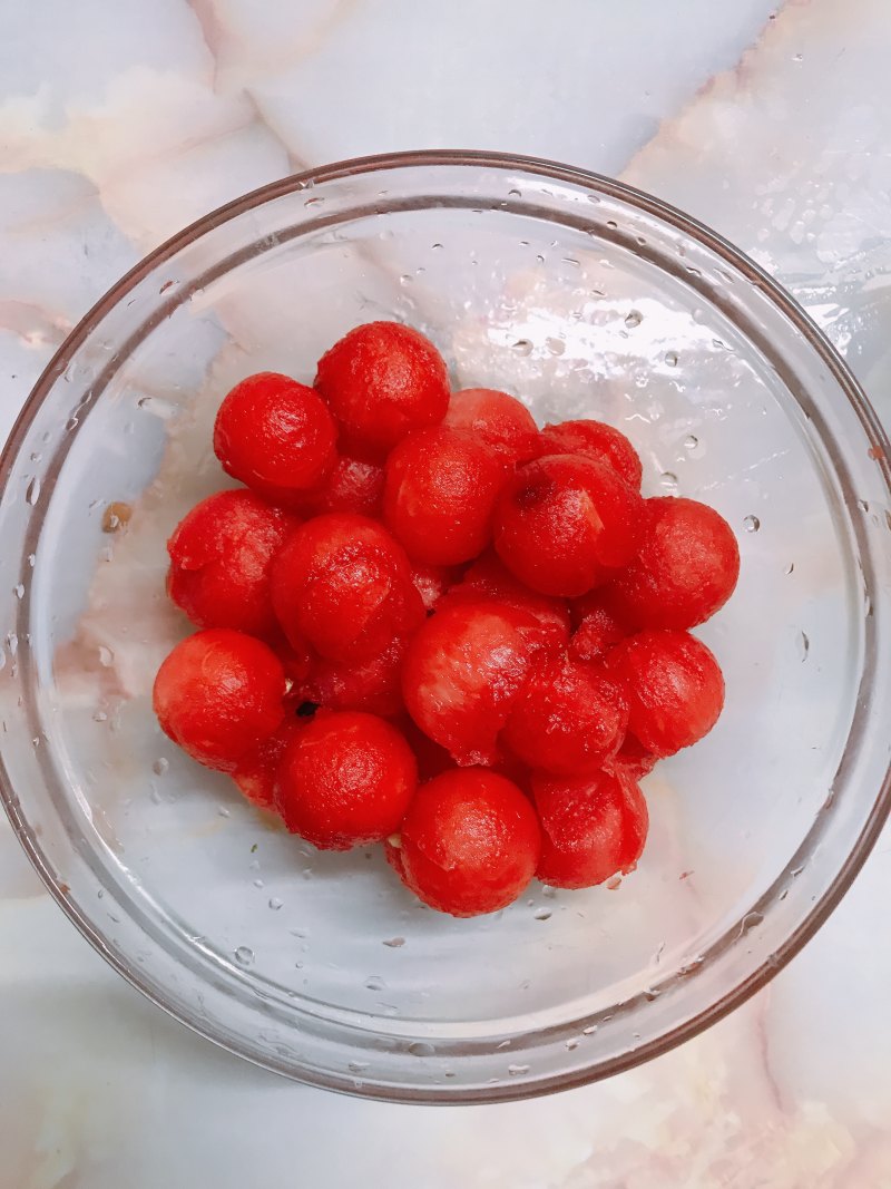 7:最后放上新鲜西瓜丁,放入冰箱冷冻2-3小时