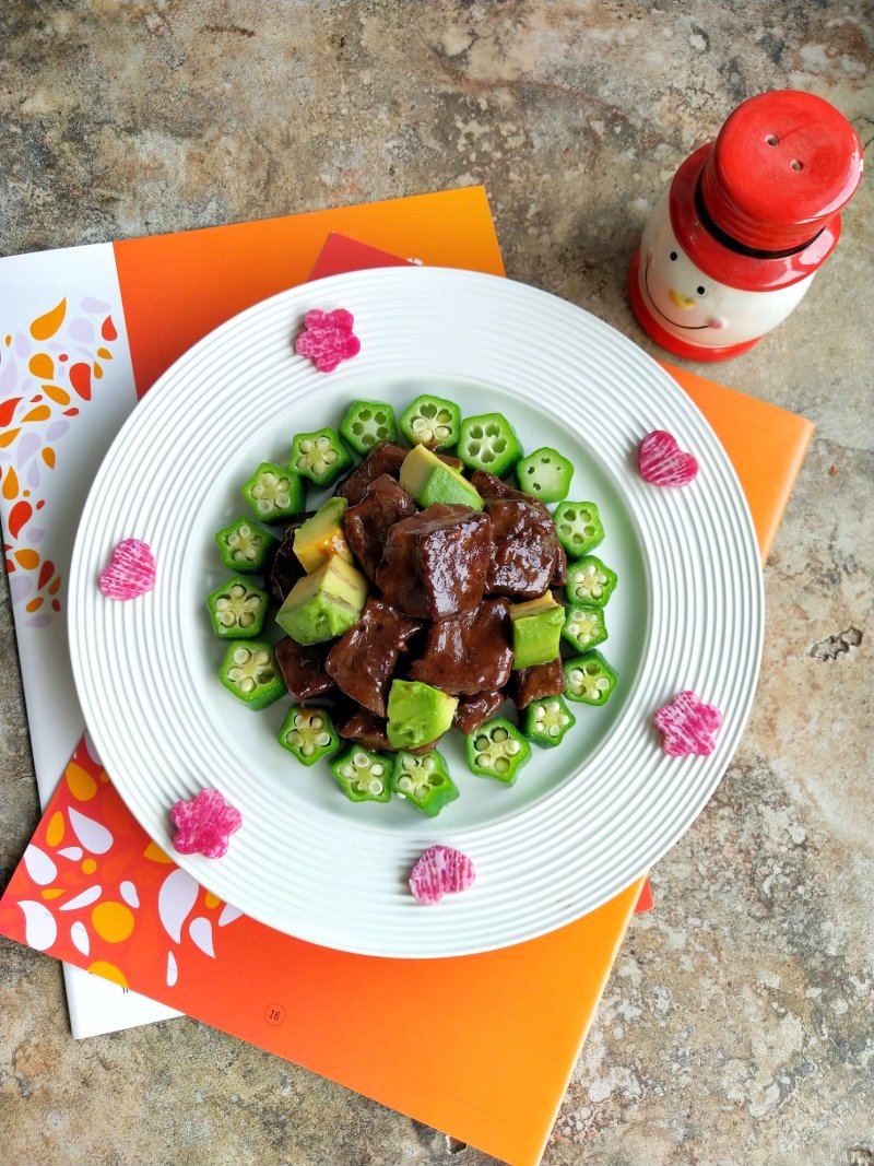 牛肉250g;秋葵3个;牛油果半个;