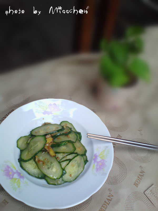 1:黄瓜切片生姜切片蒜切碎