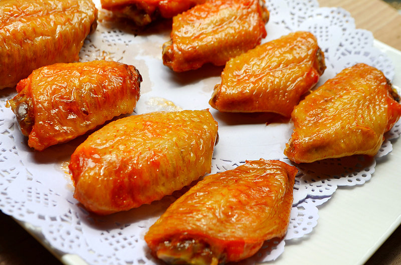 7:这就是我考好的先奥尔良烤鸡翅、嫩嫩的很香、能吃辣的可以撒一些辣椒面在上面。