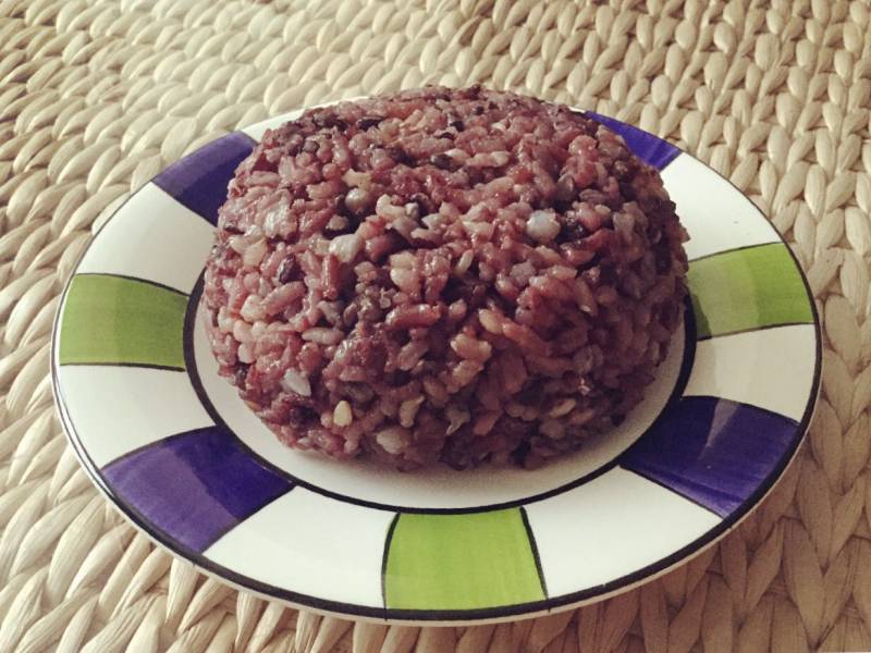 1:把大米,糙米,荞麦米和黑米一起放进砂锅,冲洗两遍后加水。水和米的比例是2:1。