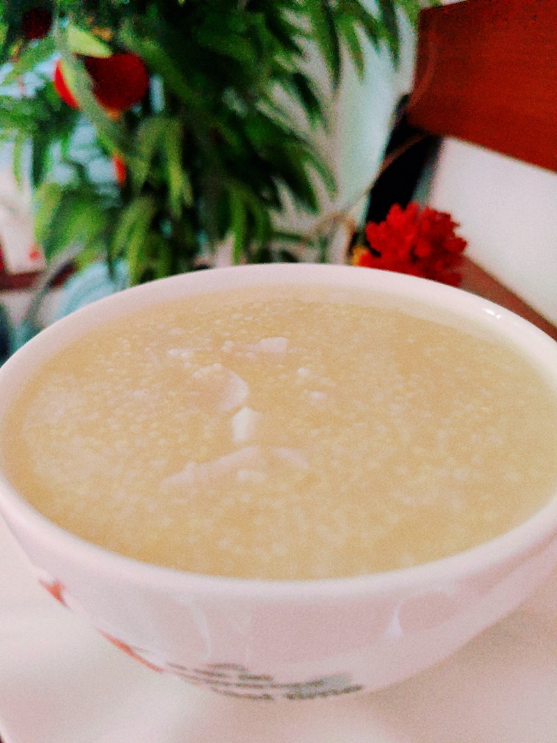 7:小米山药粥盛入碗中,撒点黑芝麻即可食用。
