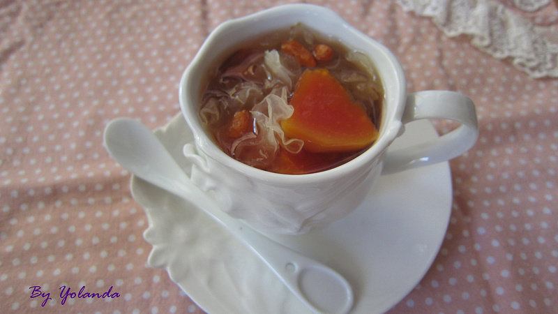 木瓜4分之1个;枸杞少许;雪耳适量;