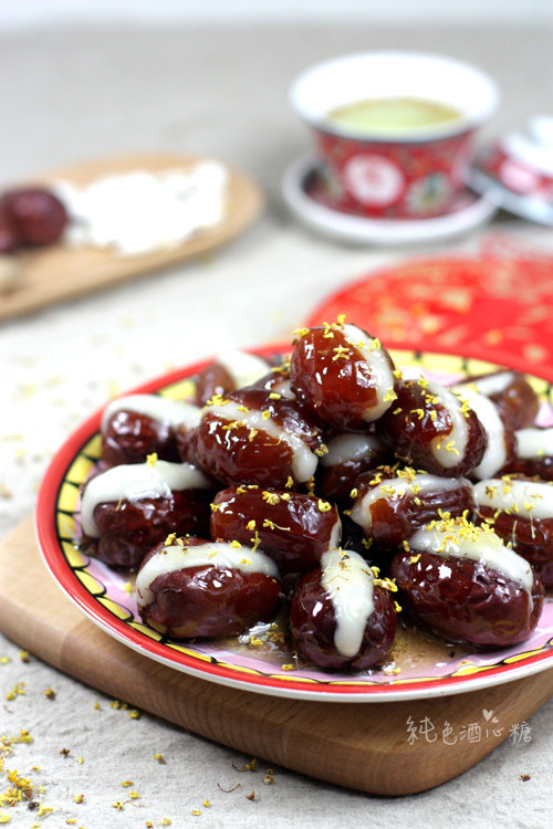 1、蜜枣本身就是一种用糖半加工后的枣,含糖量很高,吃的时候小心腻着自己哈;2、玫瑰露酒,玫瑰花制成的酒,开盖香气馥郁,很讨人喜欢,北方很少见,属于广东特产,有活血养胃的功效,南方多用在卤味里;3、糯米粉和面团时,建议先加糖桂花,略微和糯米粉搅拌一下再加温水,避免水加过多;4、甜蜜的食物中加入少量盐可以提升甜度,盐的份量不要超过糖的5%