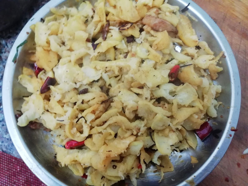 5:皮捞出过水切成丝