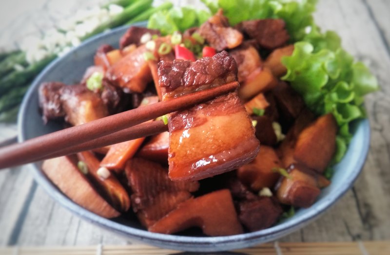 21:用锅铲在肉块的肥肉部分试一下,轻轻一戳即断说明离肉出锅已胜利在望了