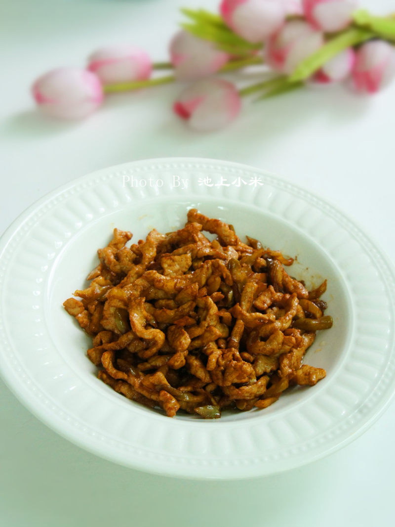 2:肉丝用料酒、淀粉、酱油、白糖及少许油抓匀腌制15分钟;
