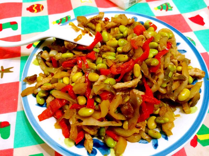 10:加入毛豆米,煸炒