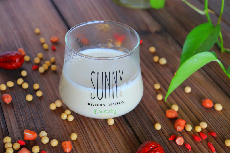 1:(以下配料比例是250至280ml的一杯豆浆)食材:黄豆25克、枸杞5粒、花生3粒、红枣1粒、白砂糖5克、饮用水250克。