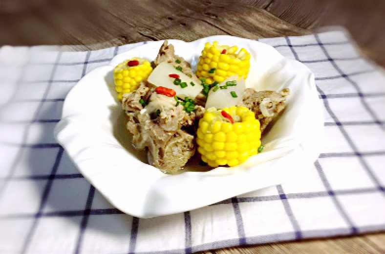 羊骨500g;水果玉米1个;胡萝卜1个;白萝卜1个;