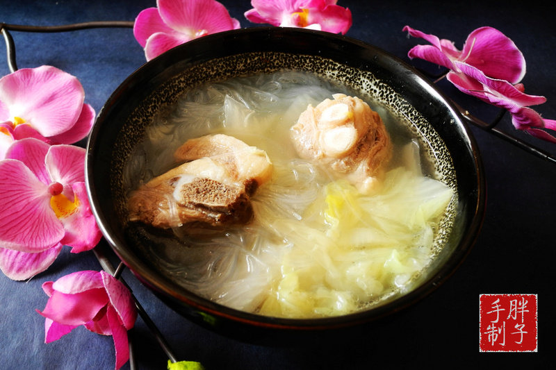 7:加入白菜和盐煮10分钟后再加入粉丝。