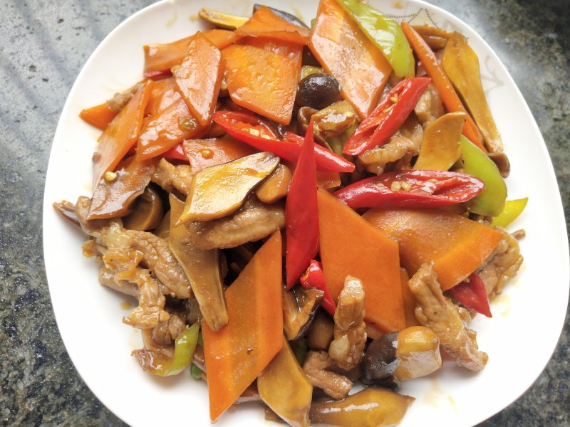 黑皮鸡枞菌250g;瘦肉250g;胡萝卜半根;