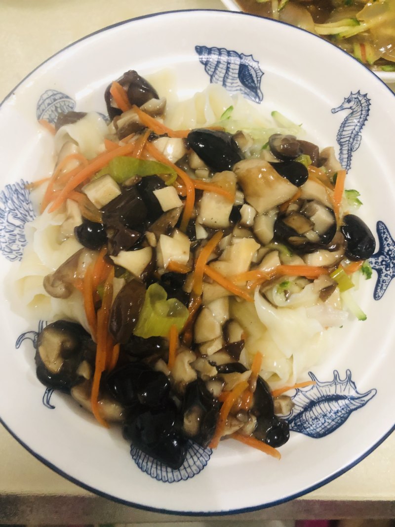 刀削面适量;木耳适量;香菇适量;胡萝卜适量;