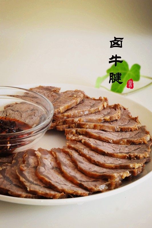11:牛腱子捞入盘中,晾凉后装入保鲜袋中,冷藏数小时,完全凉后可切完整的薄片,肉片不碎不散,直接食用或者蘸食醋蒜汁均可。