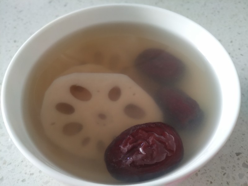 3:莲藕煮20分钟,加入红枣和白糖,再煮15分钟。