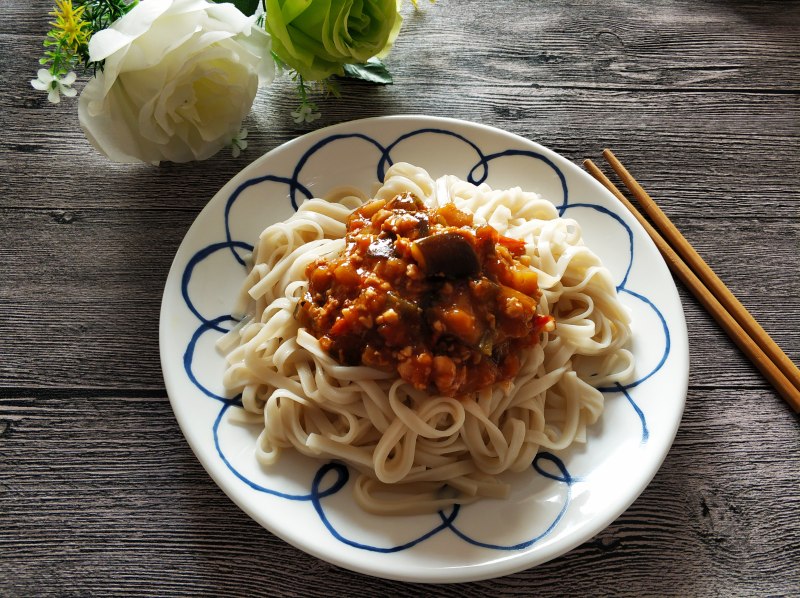 茄子肉末番茄打卤面