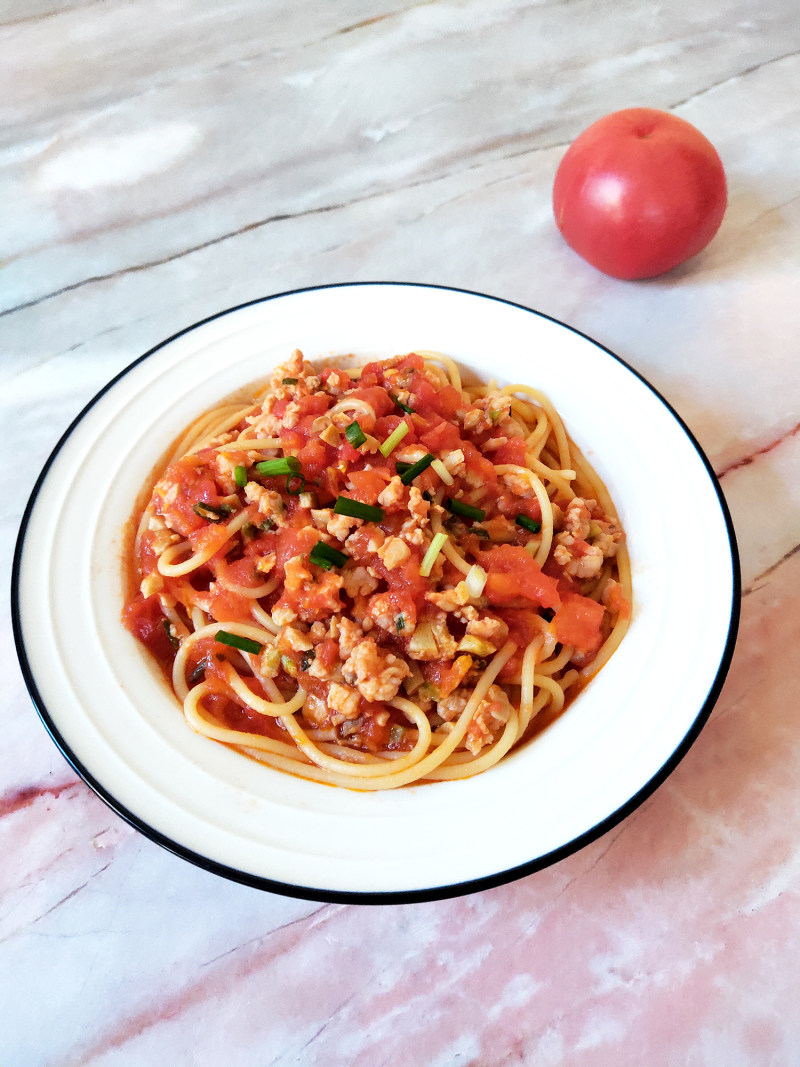 意大利直面120克;番茄1个;肉末适量;
