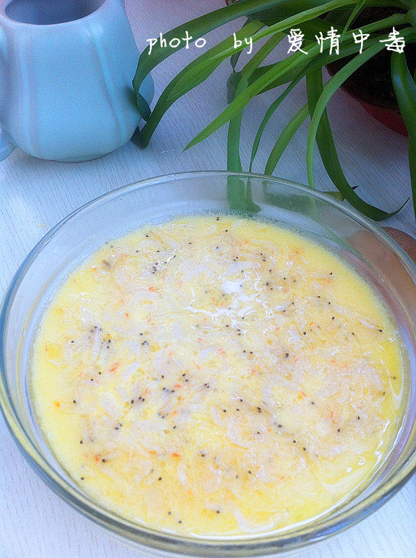 3:浮沫捞干净,或者过一下筛更细腻,上锅蒸几分钟,我是煮米饭放蒸笼里一起饭好鸡蛋也好。
