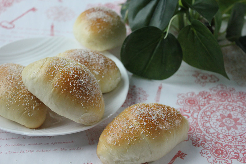 砂糖50克;盐2克;蛋液15克;黃油20克;水40克;酵母3克;椰容适量;