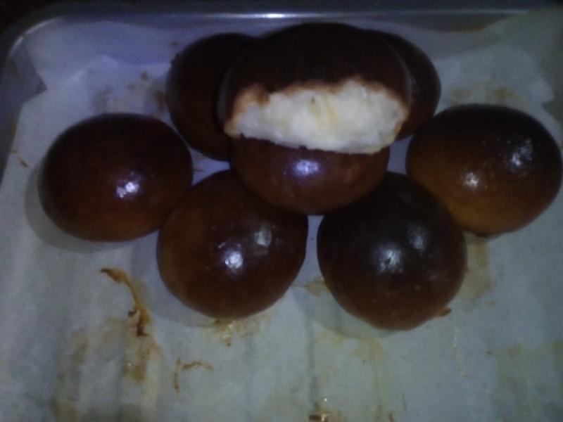 17:将面团收圆,依次放入烤盘中,待发酵到原体积两倍大时,刷全蛋液,以180度烘烤20-25分钟