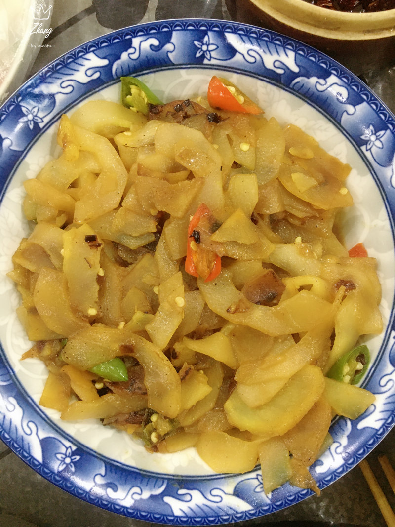 1:老黄瓜打皮,把瓤挖出,切成片