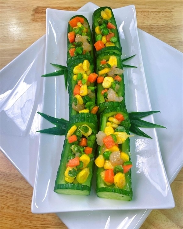 1、记得留黄瓜的边缘做竹节2、里面的菜可以自由搭配,随自己喜欢炒制