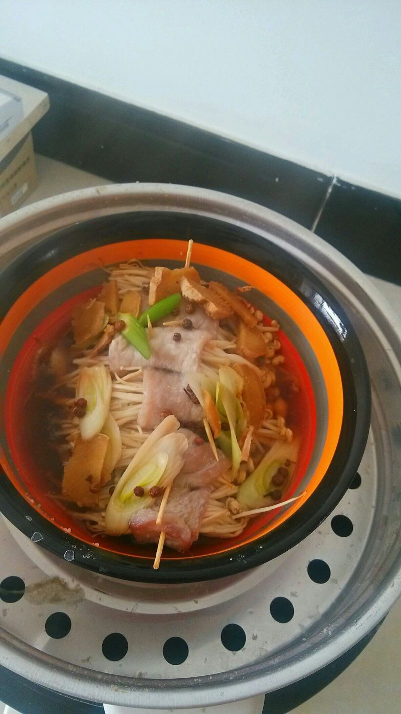 2:金针菇去根,里脊肉切薄片