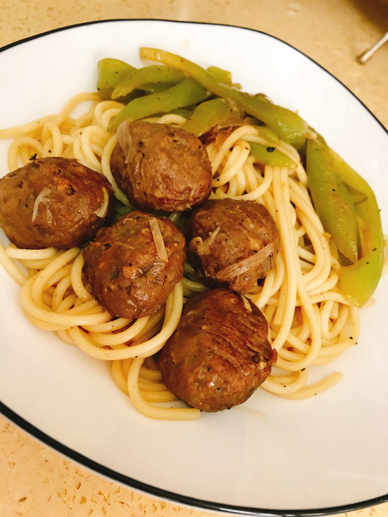黑椒牛肉丸炒意粉