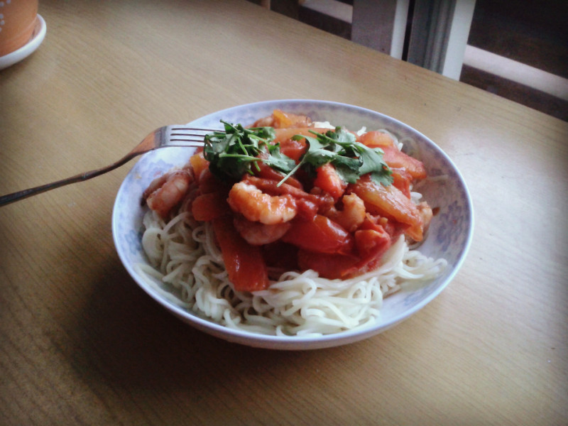 番茄鲜虾拌面