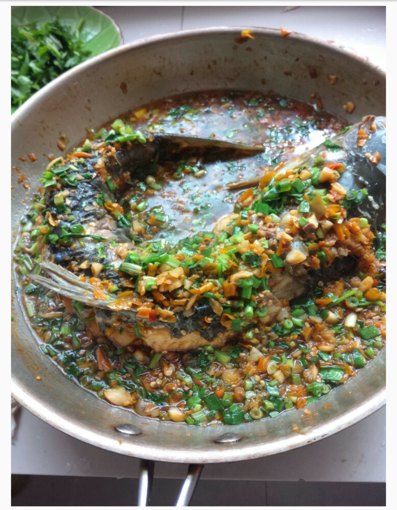 1:鱼清理干净,侧身两边切几刀好入味,锅里水烧开,然后放入蒸架,最后放鱼蒸大概五分钟关火,鱼大可以一斤加一分钟时间蒸。没有蒸架可以直接煮,不过没有整出来的嫩哦。