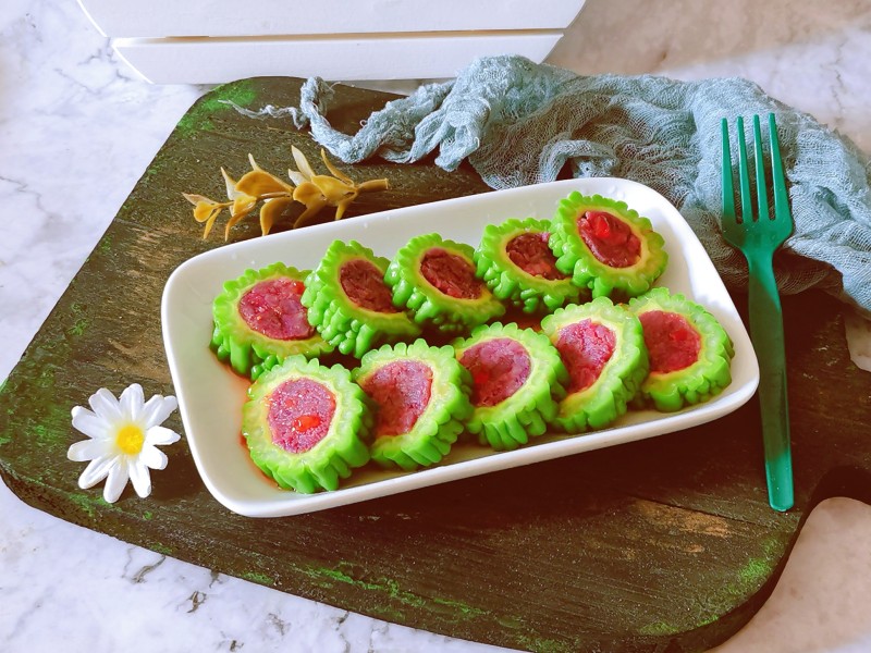 9:将紫薯泥酿入苦瓜中。