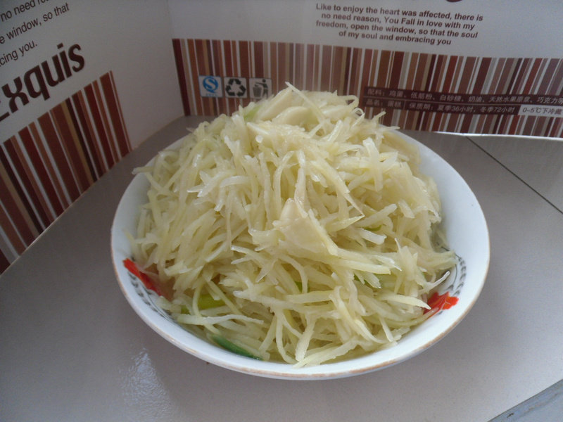 1:土豆洗净去皮切丝后洗净淀粉,沥干水分。