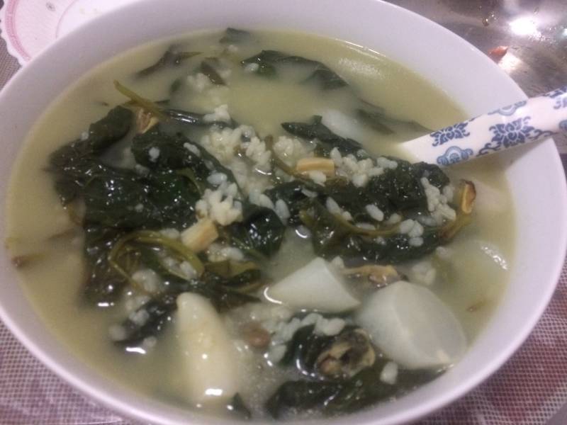 地瓜叶菜饭的汤是最好喝的。可以多加点水煮。