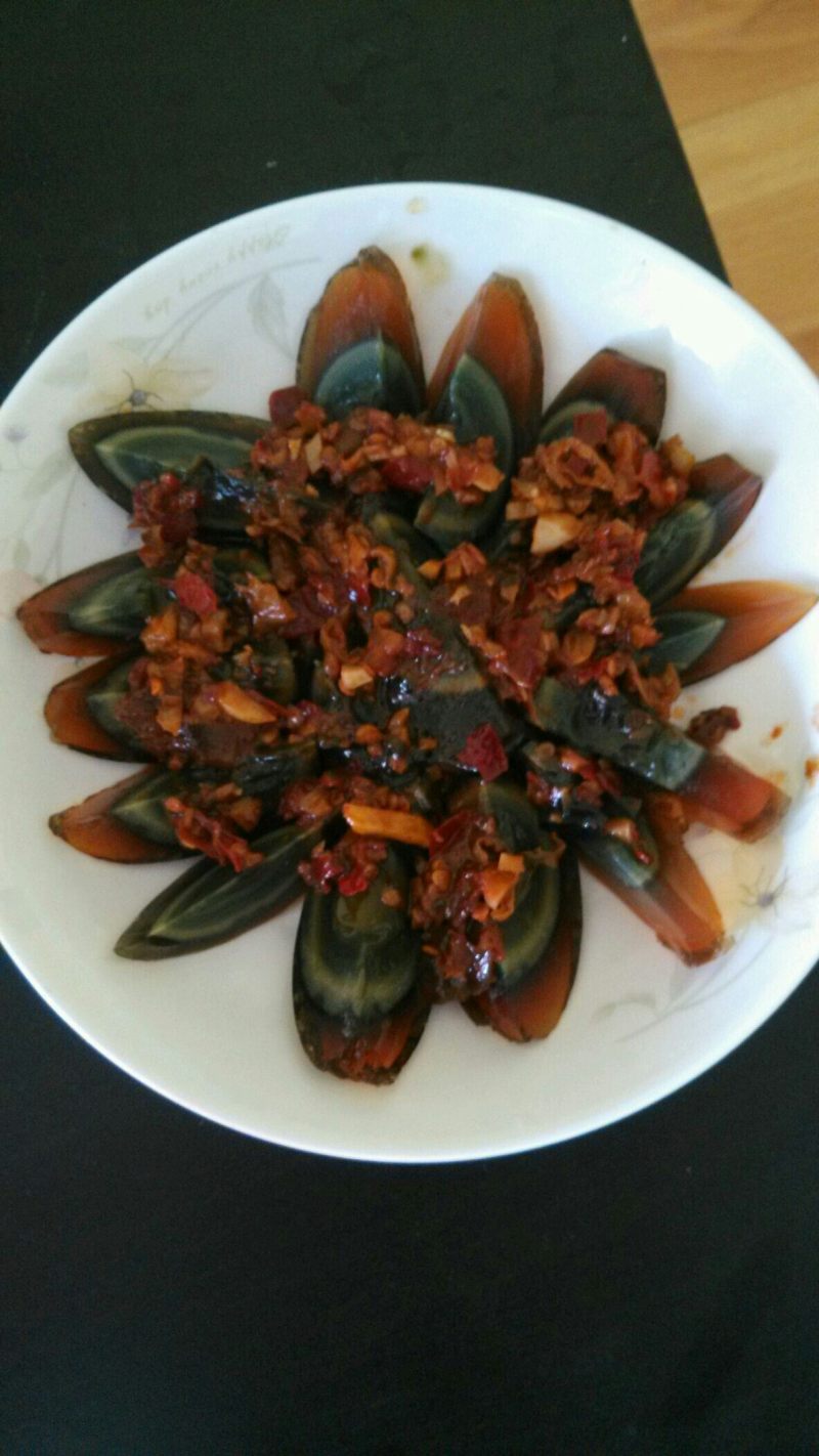 3:炒好盛起来,淋在切好的皮蛋上,等入味,就可以开吃啦