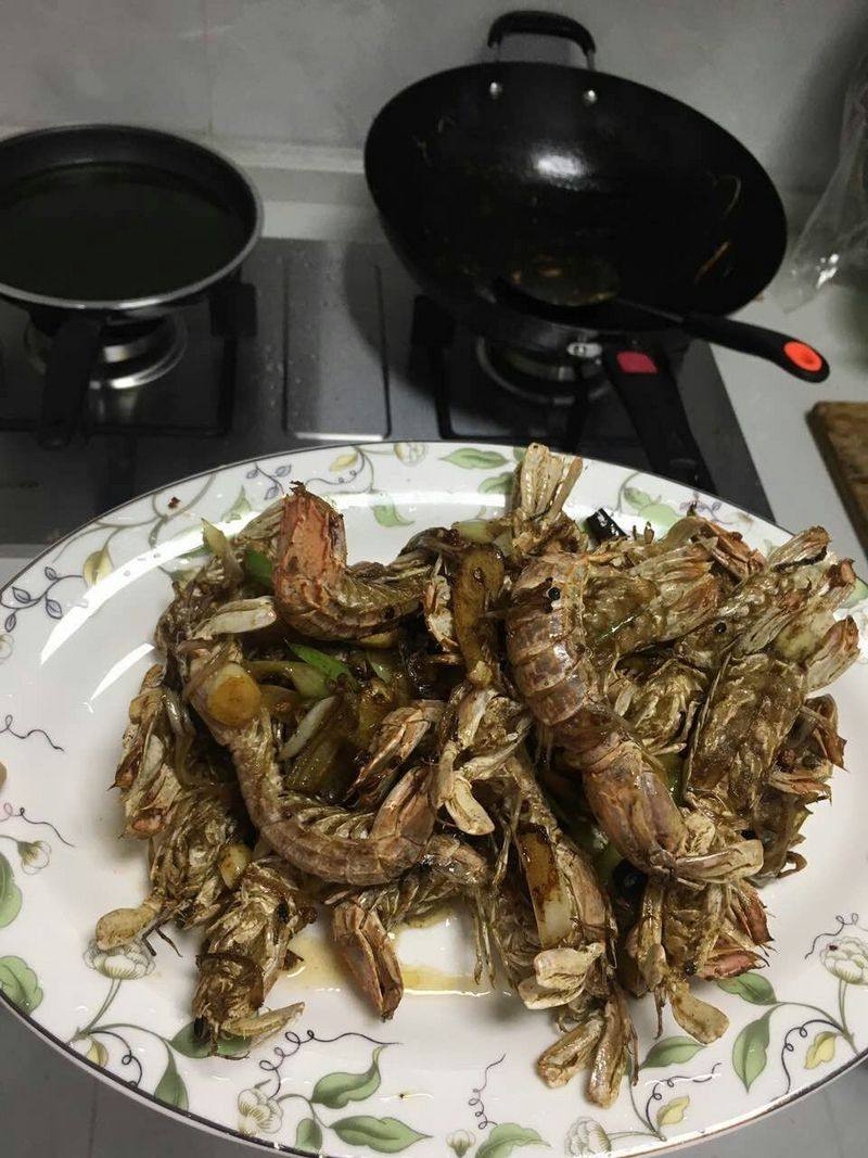 6:加皮皮虾翻炒均匀,加适量椒盐大火炒香。