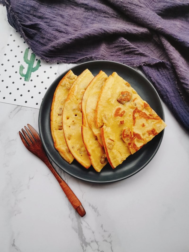 7:锅中加入植物油刷匀,倒入面糊煎至两面金黄即可。