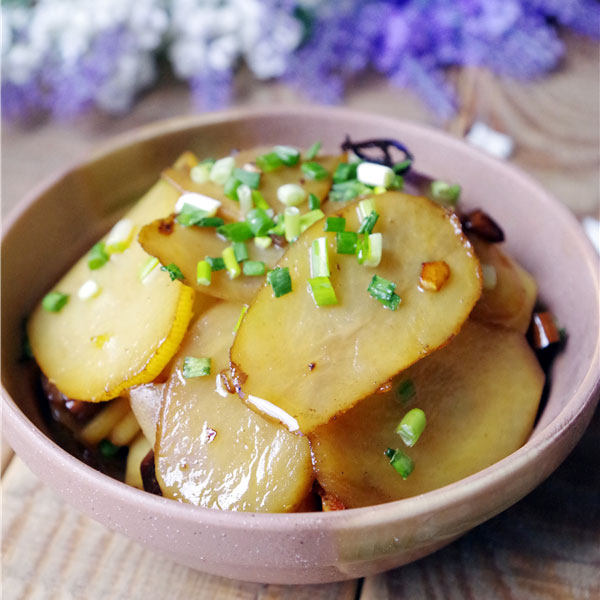 8:土豆片不要炒制时间太长,不然易碎,略带脆感的土豆片更好吃,出锅前放入葱段炒匀