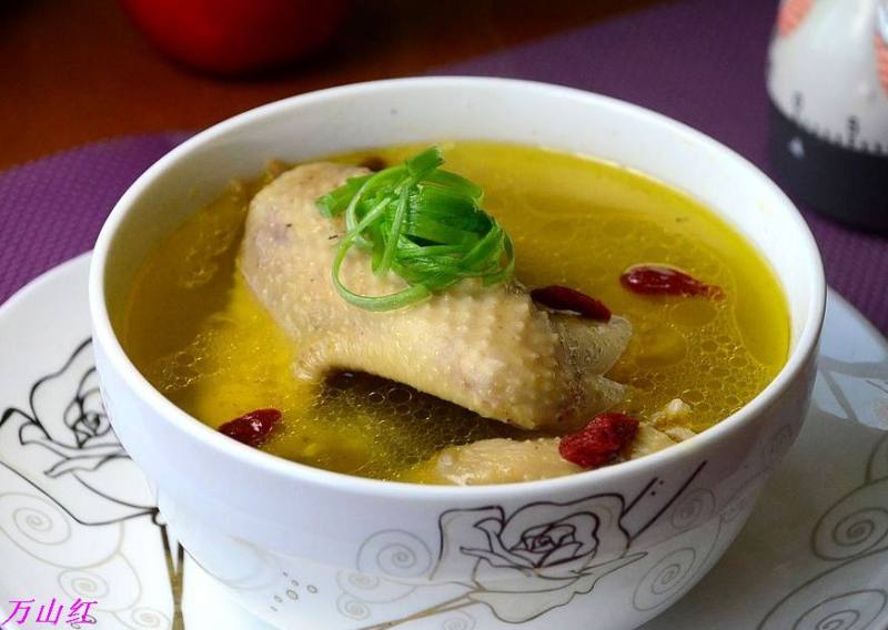 母鸡400g;当归12g;姜5g;枸杞少许;葱少许;