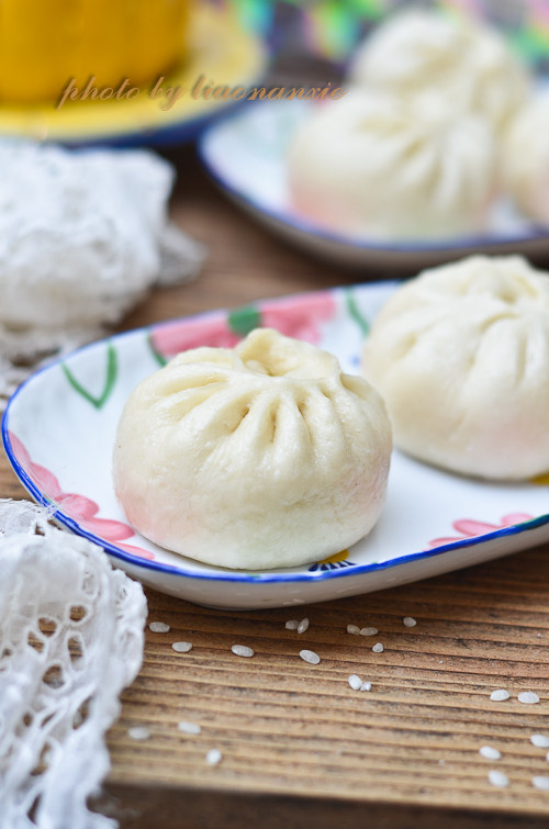 发面的步骤这里没有做重点,如果有面包机那就交给面包机,没有面包机需要手工进行揉面也挺简单,包子馒头不象面包,要点是水面酵母的比例,水面通常在2:1上下,面和酵母的比例约为100:1.。在进行第一次发酵之前需要把面团揉至光滑。面团发酵要适中,按体积通常是发酵至二倍至二点五倍大小。也可以用手指戳一下面团,拿出手指后不回缩圆洞也不变形。无论是馒头还是包子,在整形之后上锅之前都要进行第二次发酵,这样成品会比较宣软。夏季这一过程可以很短,十五分钟足够了。春秋两季常温半小时,冬季可以放在烤箱中进行发酵。