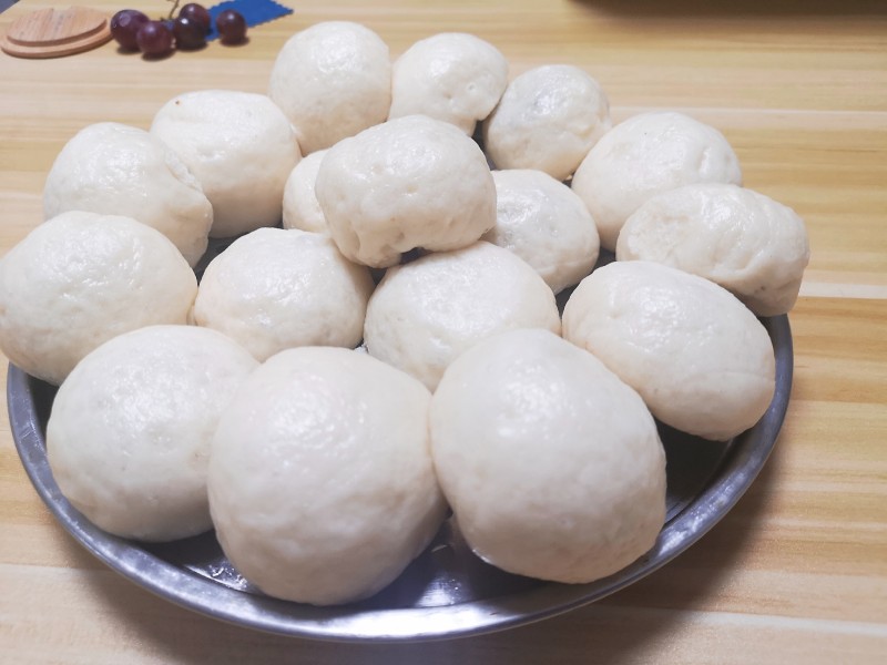 9:开始包成像包子一样封口搓圆就可以了,放那里再次醒发20分钟后上笼开始蒸,蒸二十分钟闷三分钟就可以出笼了